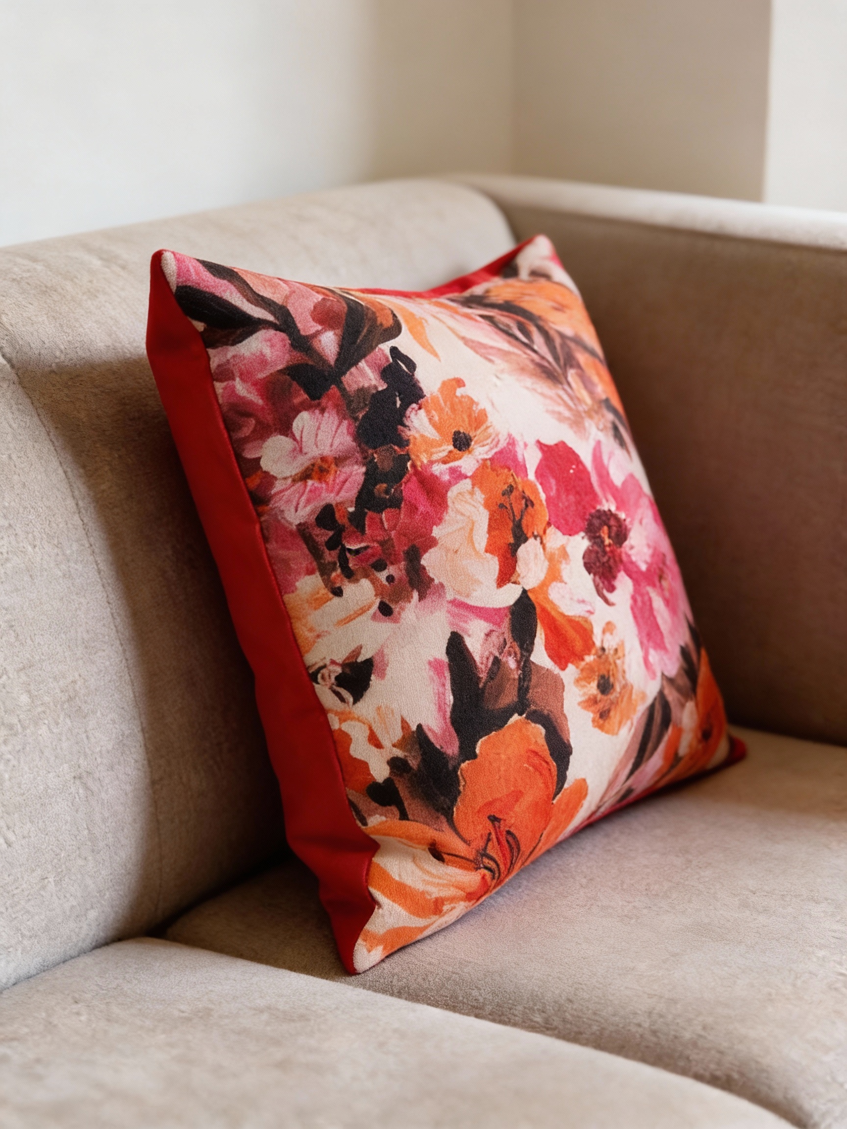 1 x Red Flower Print Scatter Cushion Cover 45cm x 45cm