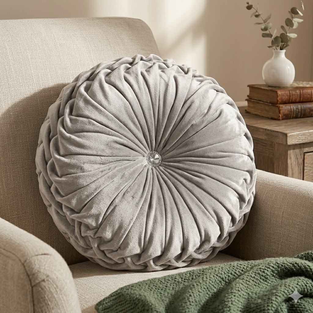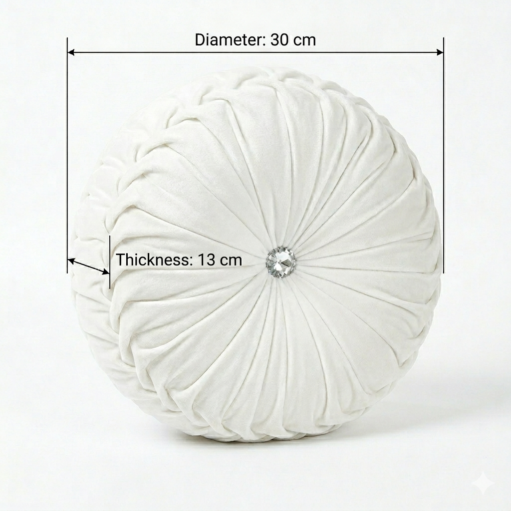 Add a soft pop of color and a whole lot of comfort to your space! Whether you’re refreshing your lounge or nesting in the bedroom, this round velvet cushion brings that “perfectly finished” look to your home. With its chunky 13cm depth and sparkling crystal center, it’s as cozy as it is cute.