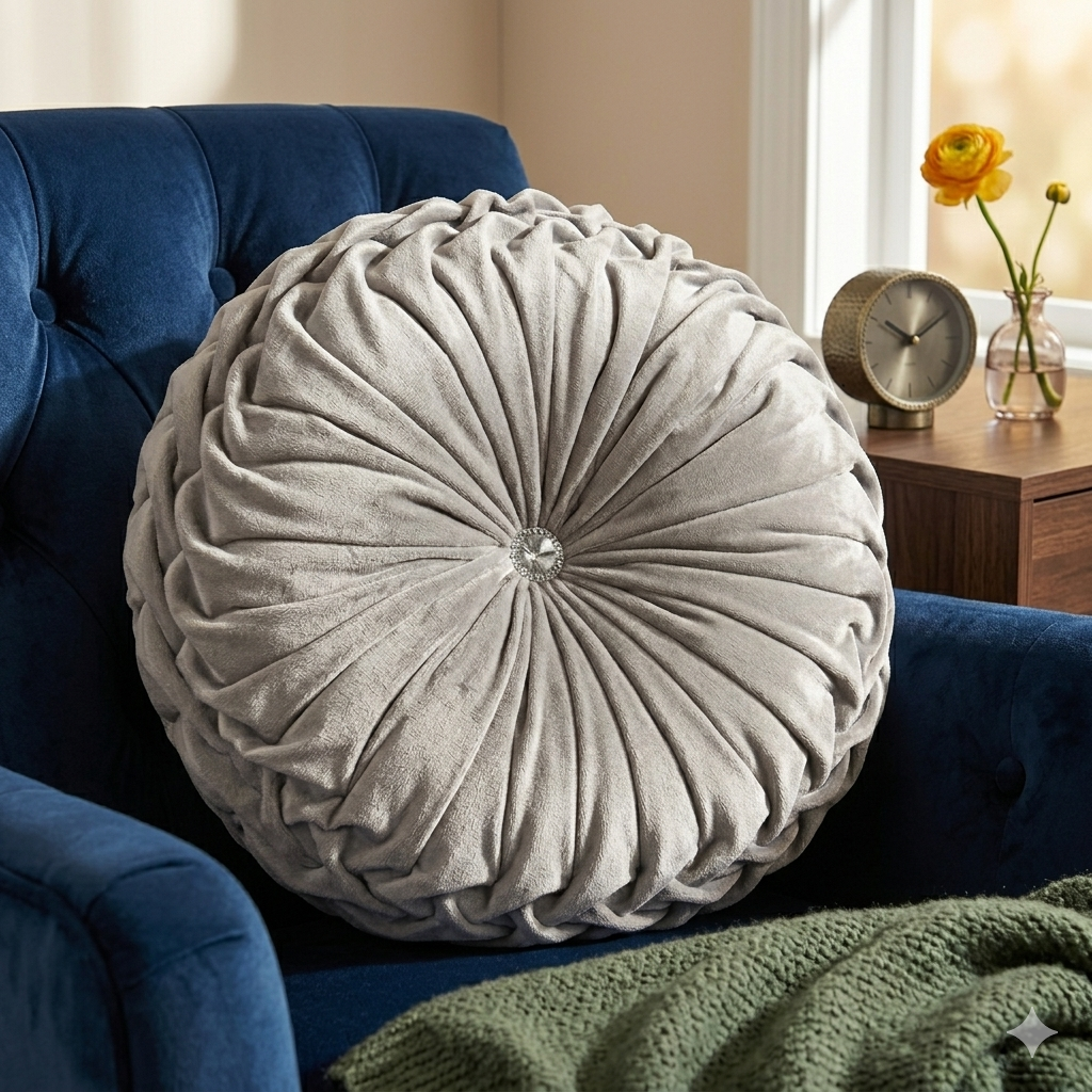 Velvet Navy Blue Round Cushion