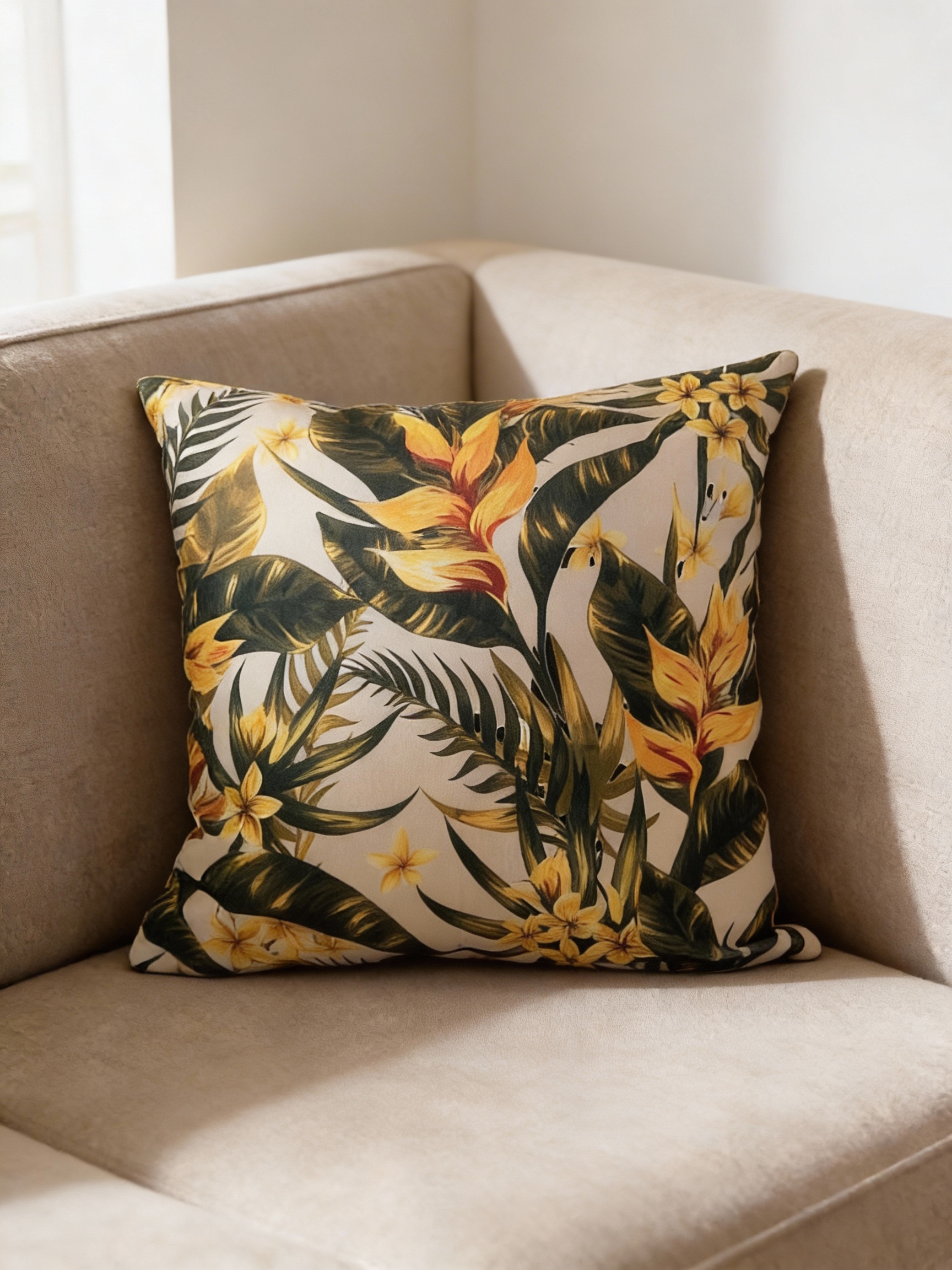 Yellow Flower Print Scatter Cushion 45cmx45cm